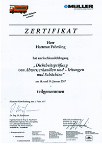- In Dichtheitsprüfungen von Abwasserkanälen und -leitungen sowie Schächten